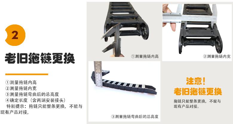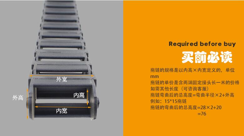拖鏈型號 內高X內寬 外高X外寬 彎曲半徑 樣式 接頭尺寸